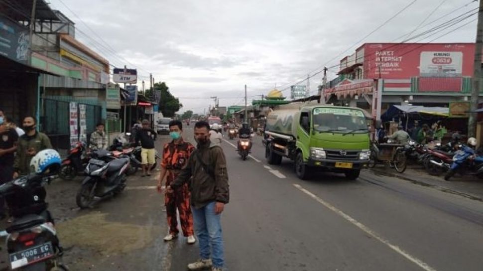 Tiba di tempat kejadian korban diduga tersenggol truk sehingga korban hilang kendali lalu terjatuh.