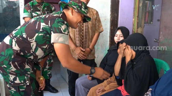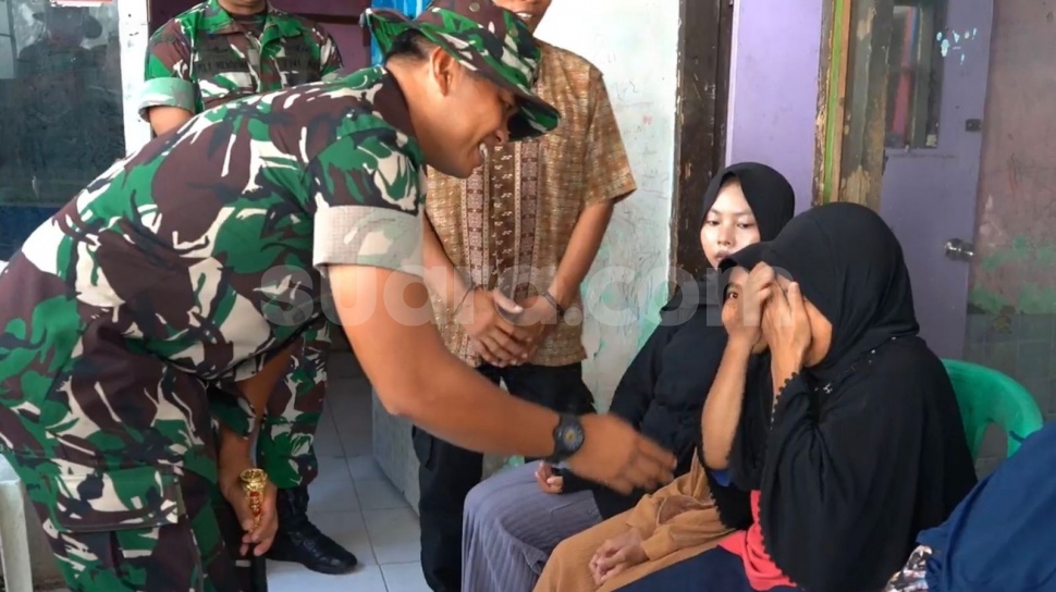 Momen mengharukan terlihat saat Dandim 0623 Cilegon, Letkol Inf Imam Buchori berbincang dengan keluarga penerima bantuan perbaikan rumah tidak layak huni yang menjadi bagian dari program TMMD di Kota Cilegon.